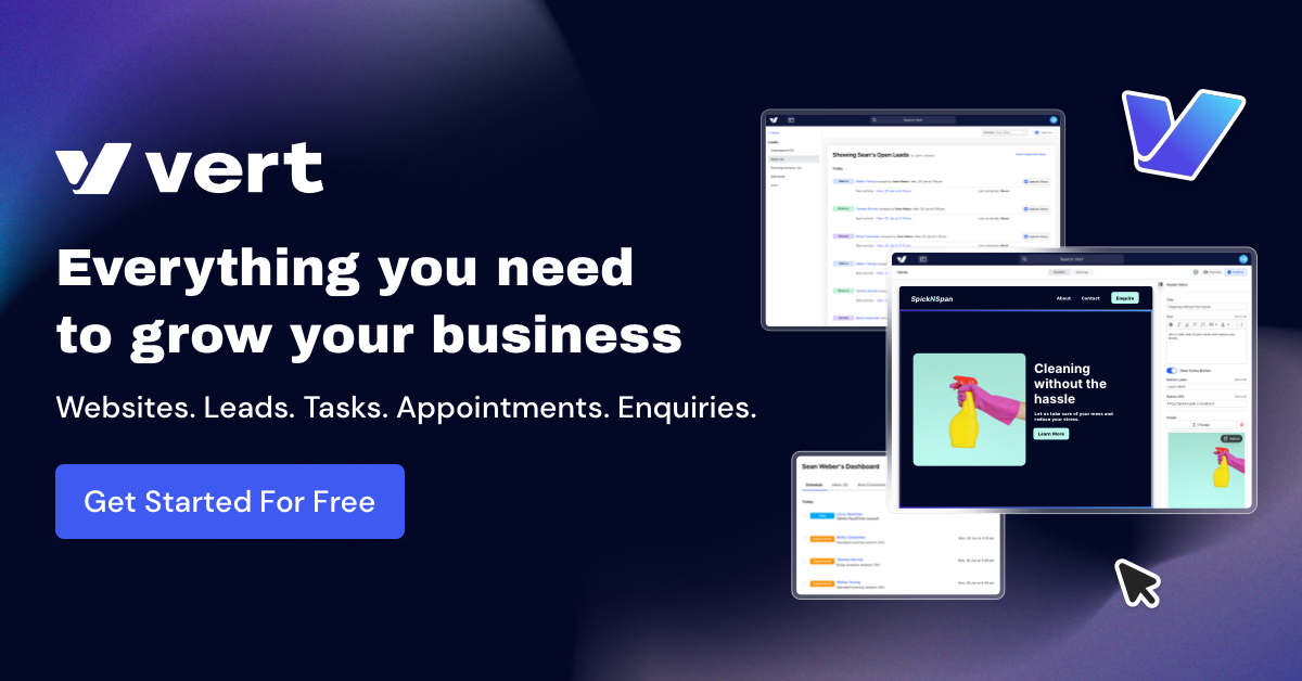 Vert allows you to quickly build a professional website, manage tasks, and automate processes, freeing up your time to focus on growing your business.